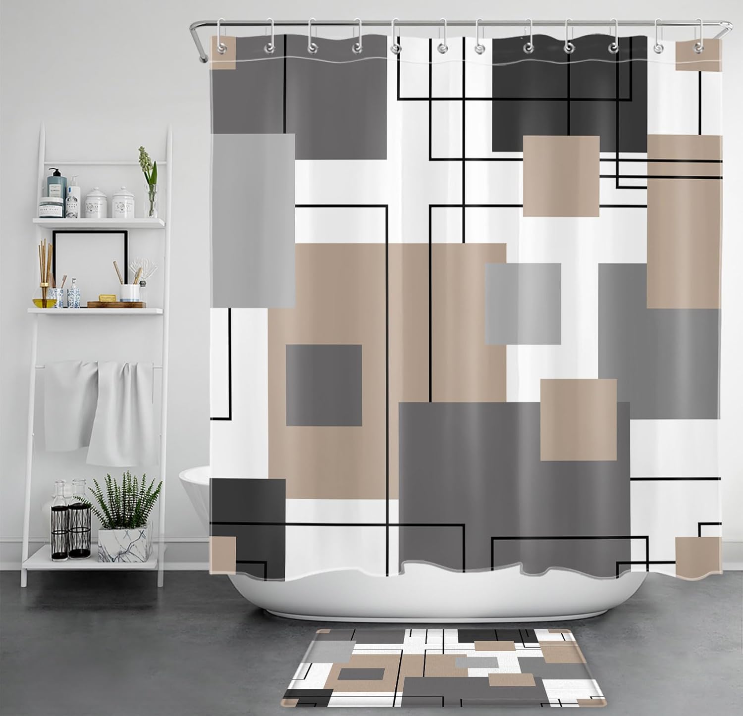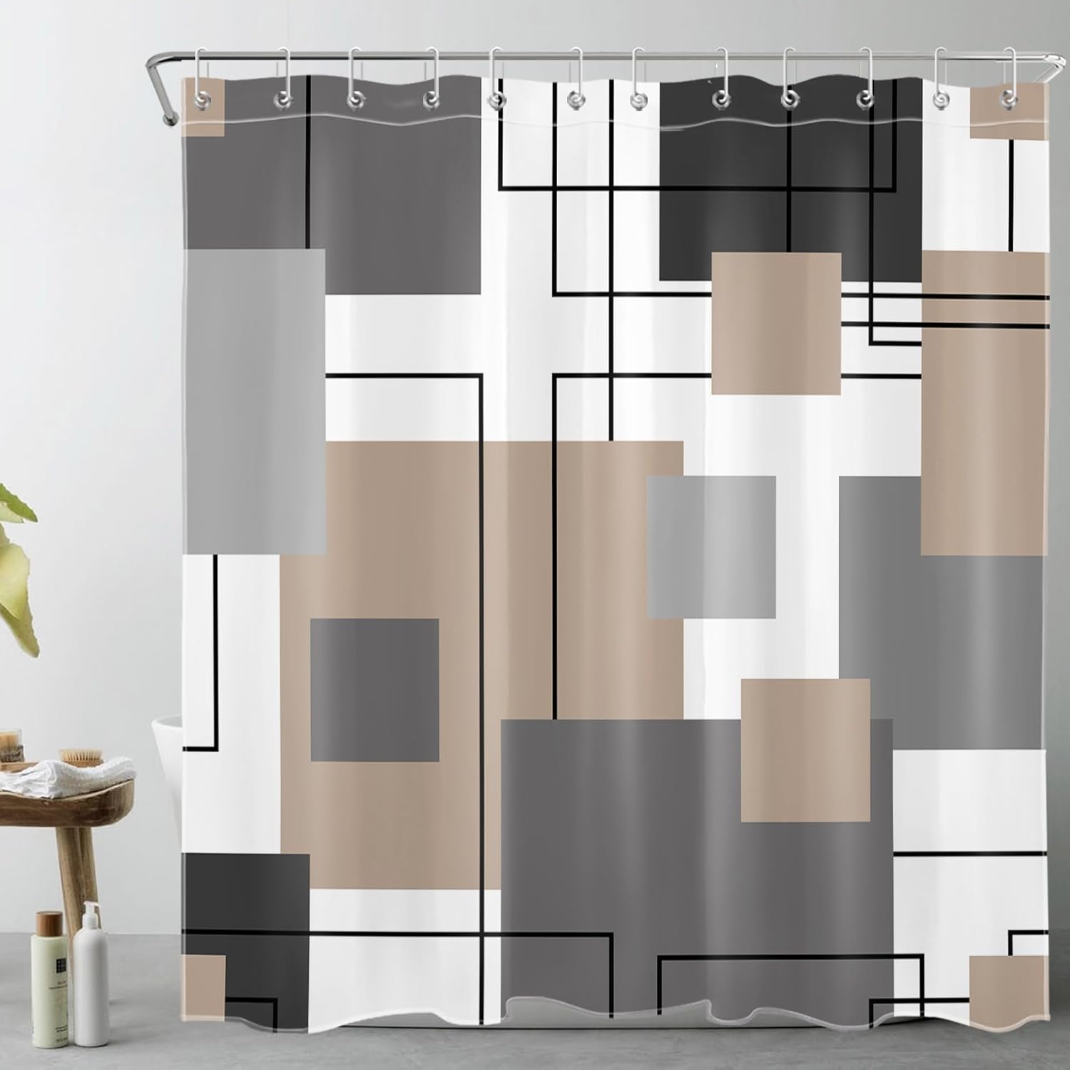 LB abstract modern shower curtain Sets for BathroomShower Curtain Material: Polyester fabricShower Curtain Size: 70 inch width x 70 inch height, fits most standard size shower stall/ bath tub Package include: 1 shower curtain,12 hooks, 1 bathroom rugsMulti Functional: It not only can be used as bathroom shower curtain,but also used as door curtain,kitchen curtain,window curtain,wall art decor,tapestry,photo backdrop,table cloth,baby shower party decor etcDuring shower time, it can prevent water spray effectively while you are taking a shower. Light-proof, protect your privacy,a beautiful unique designed shower curtain can refresh your bathroom and brighten your day! Waterproof and dries fast after you take a shower.It is not too thin or too thick, no need linerWe offer Multi Themed shower curtainsHoliday: Halloween,Christmas,Valentine,Easter,Father's day,Mother's day etcMulti Styles: cute animals,cartoon,baby children kids,underwater world,tropical plant palm coconut tree flamingo forest jungle,beach,sports,watercolor art,farmhouse barn door,african woman,fashion popular,fun funny bathroom shower curtain etcAs manufacturers of digital printed home textiles, we follow current trends and bring you the latest home fashionA perfect gift idea for your mom,dad, children, grandma,wife,husband and all other beloved ones with thousands of surprising designs About Color: 1.It is normal that the digital images may have some color difference. 2. Due to we use different displayer, the picture color you see maybe not the same as what we see. 3.We cannot be responsible for variations in color between the actual product and your screenAbout Size: We measure include the edge size,the fabric total size still is 70x70 inch,the actual you feel maybe little shorter,but will not affect your using,please understand.The important,the shower curtain leave away the ground will be better in hygiene